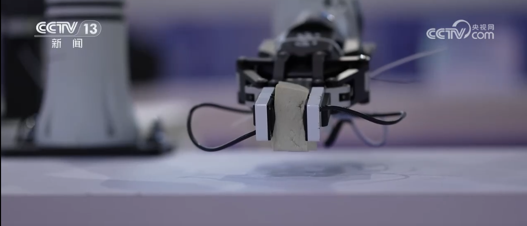 展会现场,人工智能、精密仪器设备、新型显示、新材料等领域最新科技成果备受瞩目。这款机械手配备AI触觉传感器,可以模拟人类手指的皮肤物理特性和触觉能力,让机械手实现高度精确和稳定的抓取操作,能够“轻拿轻放”豆腐、鸡蛋等易碎物体。