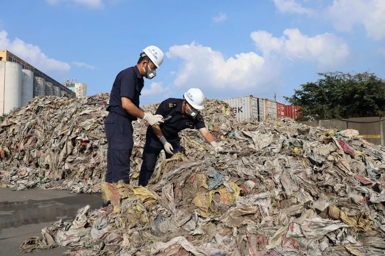 货物中夹杂大量废旧编织袋 防城海关查获一批“洋垃圾”