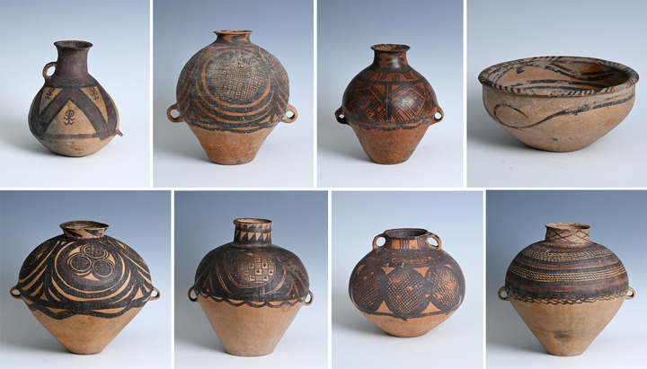 意大利返还中国的新石器时代马家窑彩陶器(11月5日摄,拼版照片)。新华社记者 李贺 摄