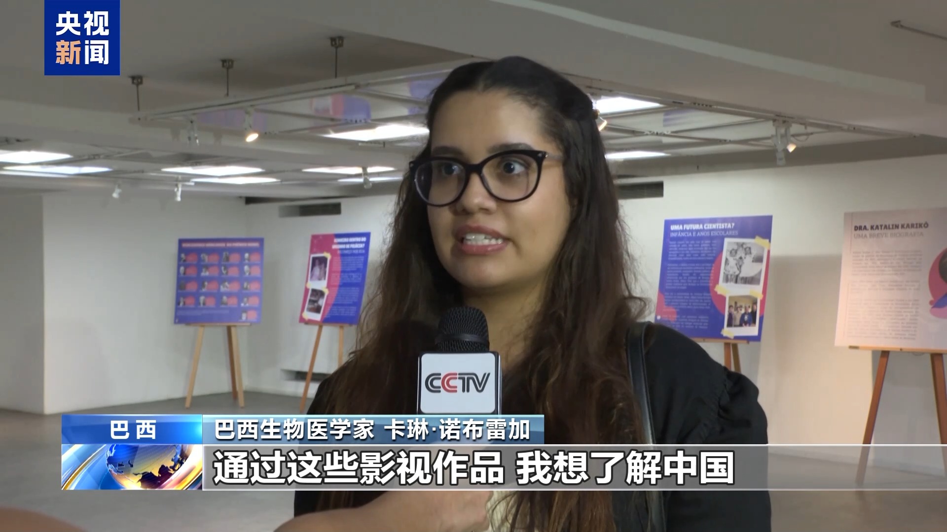 巴西生物医学家 卡琳·诺布雷加:我希望有一天能去中国,通过这些影视作品,我想了解中国。我看到的这些作品展示了一种有趣的、不同的文化,与我们的语言、文化完全不同。就像影视作品中所说的那样,沟通是一切的基础,所以我认为中国和巴西两国人民通过影视展播来进行交流,是很有帮助的。我认为这对双方都非常有益。