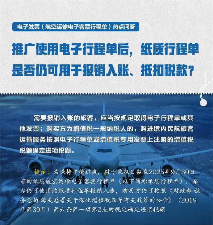 纸质行程单是否仍可以用于报销入账、抵扣税款?