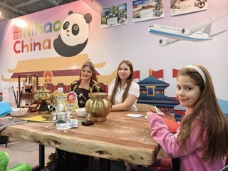 “你好!中国”展位展示了贵州特色旅游资源,并展出了“云上贵州·最美云游季”VR展,吸引访客纷纷驻足体验。中国入境游相关便利化政策和措施也颇受关注,支付、上网便利化操作指南供不应求。大量访客积极参与书法、中国常识问答、汉服拍照打卡等文化体验项目,成为此次展览会中互动体验最强的展位。