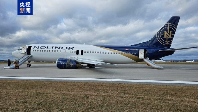 加拿大一波音737客机出现故障后迫降 机身倾斜引擎着地