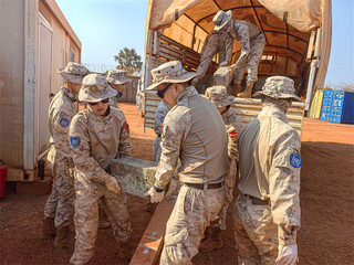 受领任务后,中国维和工兵抽组精干力量,积极对接作业内容,派出工程、运输、保障等小组进行配合,累计出动各类机械装备上百台次,多点位同步部署展开板房升级改建工作。