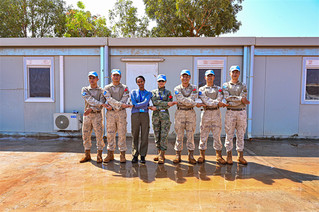 在工程现场,联南苏团工程处代表与军事部门代表对中国维和工兵的板房改进工程进行了抽查验收,对中国维和军人的高标准提出了肯定,并致以敬意和谢意。