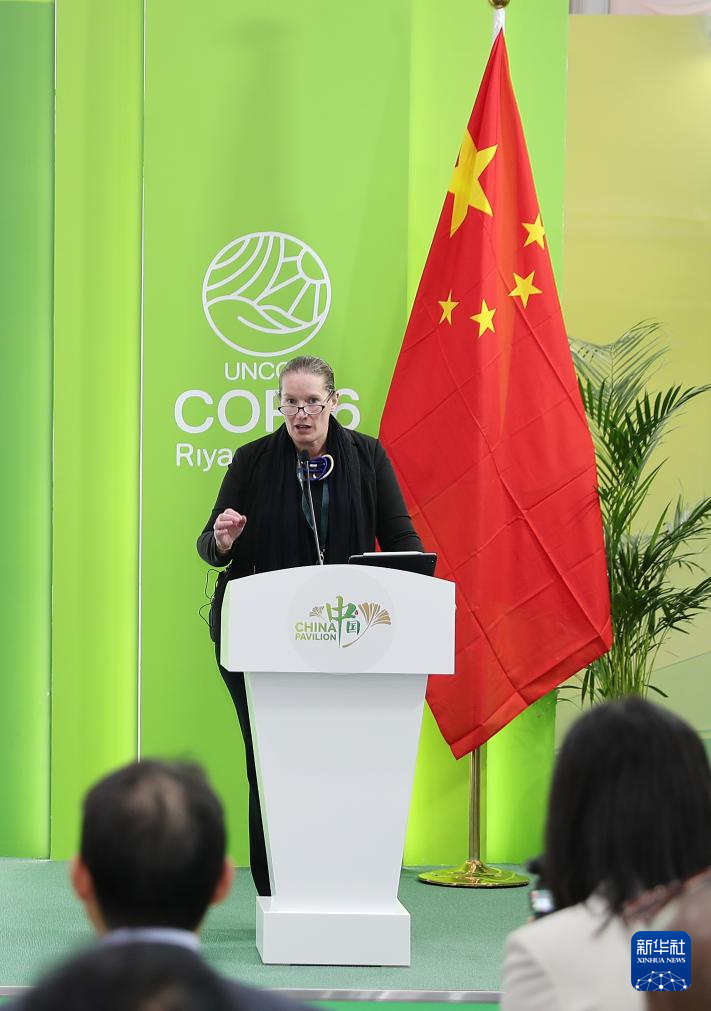 12月4日,在沙特阿拉伯利雅得,世界银行全球环境局局长瓦莱丽·希基在《联合国防治荒漠化公约》第十六次缔约方大会(COP16)中国馆举办的边会上发言。新华社记者 王东震 摄