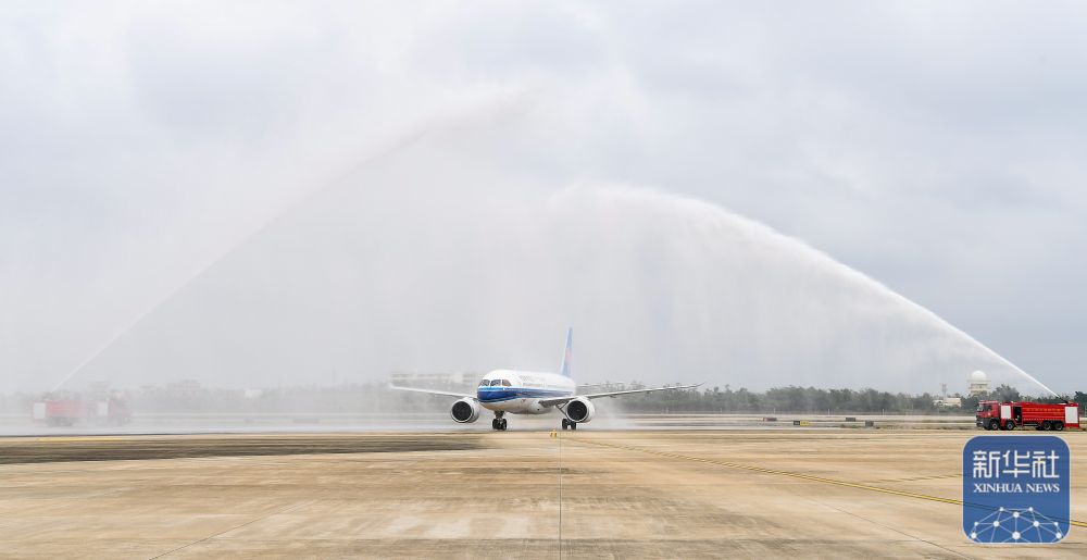 12月11日,由C919执飞的中国南航CZ6786航班在海口美兰国际机场通过水门。