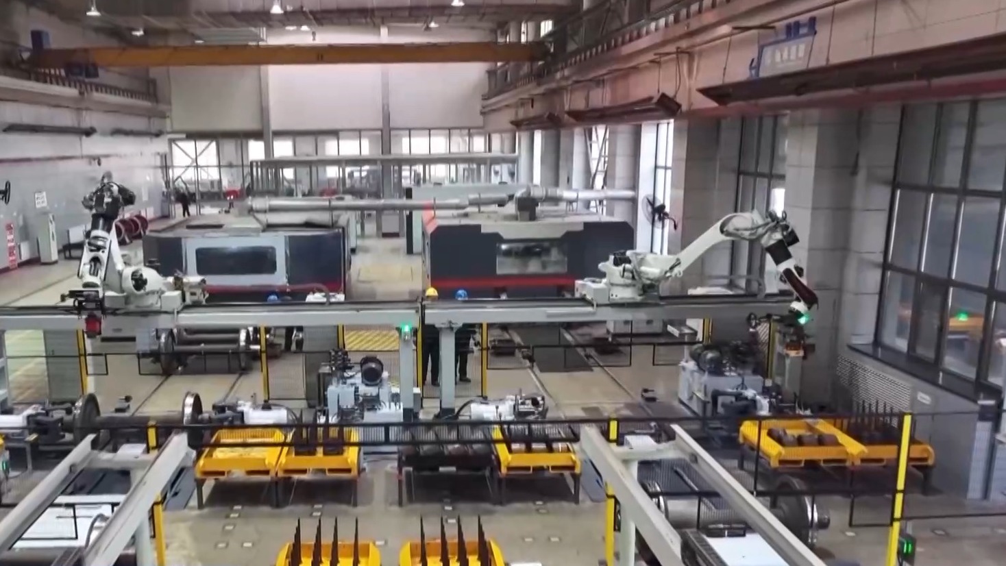 总台记者 其勒格尔:走进国家能源集团铁路装备公司包头分公司检修车间,一辆辆庞然大物被分解成各个部件,等待着检修工人的细致检查。我现在所在的位置是转向架检修流水线,这里主要负责转向架的分解、检修、检测和组装。机械臂将一个枕簧进行抓取、旋转、放置等一系列操作,确保合格的枕簧被准确地选配。以前最少需要2个人配合,一天搬运超过18吨的枕簧才能完成的工作,如今只需一台机器人即可,省时省力又安全。