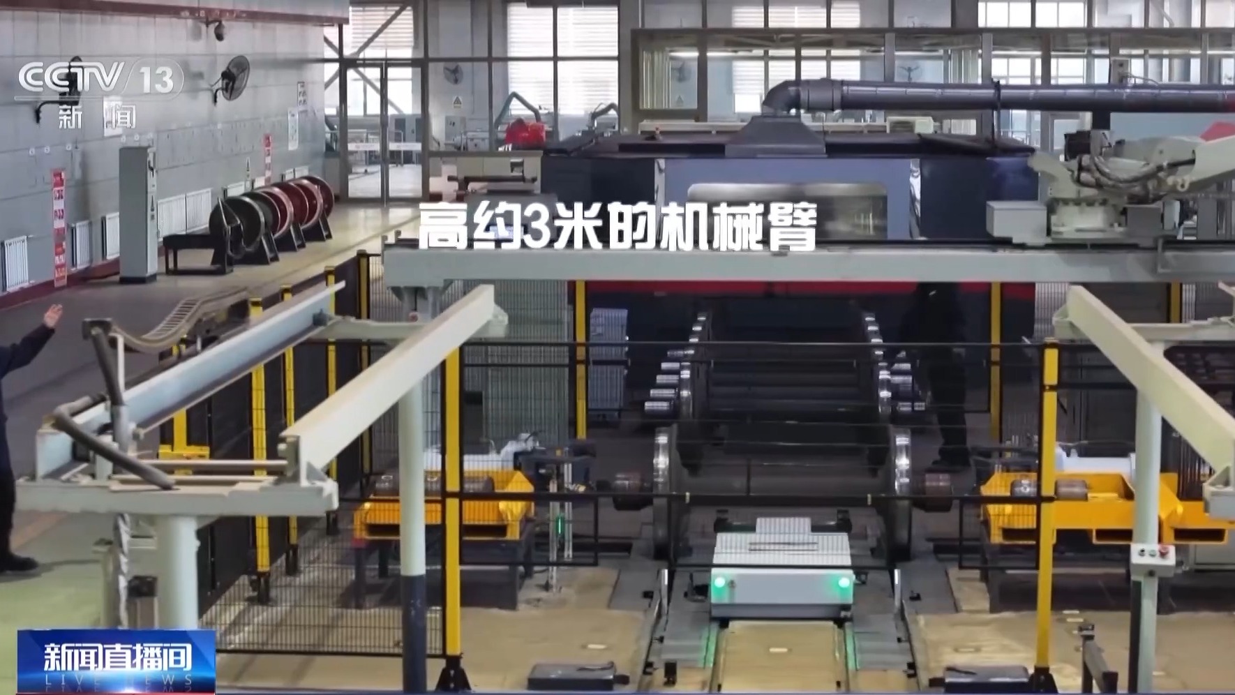 总台记者 其勒格尔:这个车间相当于修理火车车皮的“4S店”。高约3米的机械臂正在不停地将轴承搬运到指定的位置。一套轴承重约32kg。以前工作人员平均一天要将160多套轴承搬到一米外的存放架上并摆放整齐。但是自从轴承自动退卸系统投入使用后,只需要在电脑旁按压按钮,机械臂就会自动将轴承和后挡放在指定位置,极大地节省了人力成本。