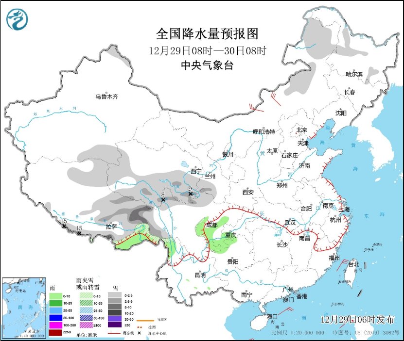 央视网消息:据中央气象台网站消息,昨日,全国大部降水稀少,黑龙江中东部、吉林东部、西藏西部和南部等地部分地区出现小雪,局地中雪。预计今明两天,全国天气形势无明显变化,全国大部地区仍降水稀少,仅在西藏中东部、青海南部、川西高原及新疆北部、内蒙古东部、黑龙江东部等地有明显降雪。