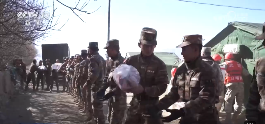 据总台记者的现场报道,在定日县总医院长所乡分院旁边的一片空地上,西藏军区紧急调运的100张行军床、100张充气床垫和100个军用暖炉送到了这里。这些物资在由部队官兵紧急卸载,卸载之后,将快速分配到受灾群众所在的各个临时安置点。