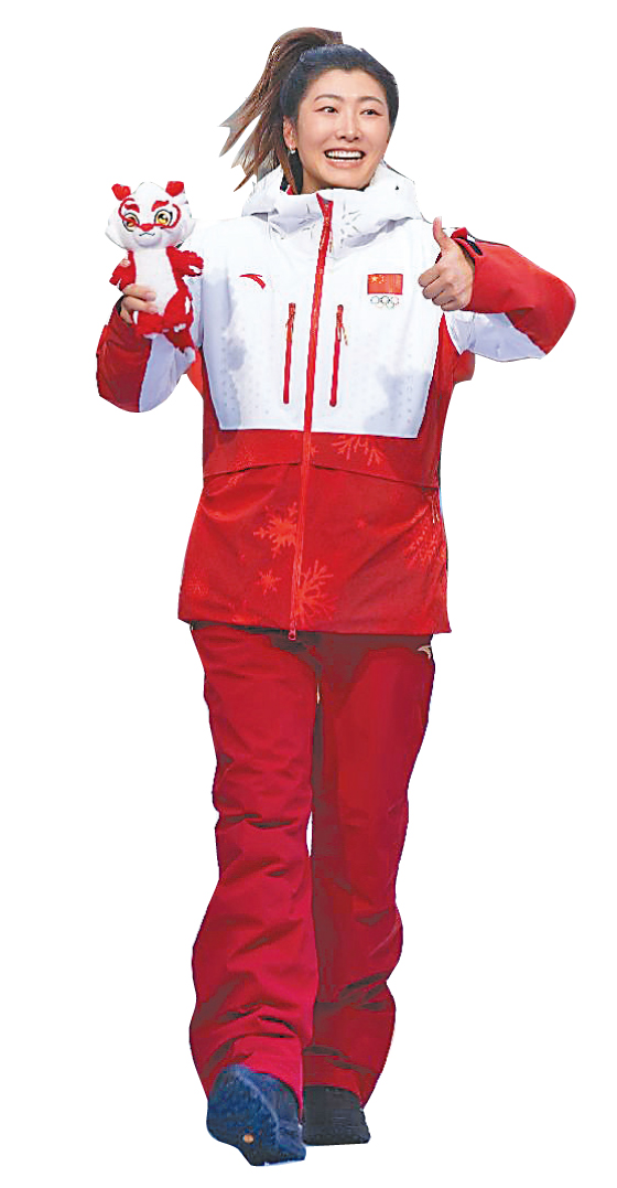 北京冬奥会冠军徐梦桃走秀展示领奖装备。本报记者 石琪摄