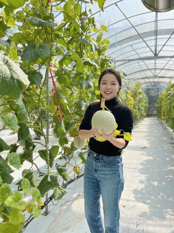 王园园在展示培育种植的网纹瓜