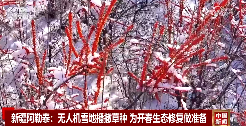 新疆阿勒泰:无人机雪地播撒草种 为开春生态修复做准备