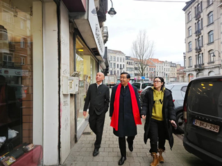 1月22日正值北方农历小年。当天上午,冒着料峭春寒和霏霏细雨,费胜潮来到布鲁塞尔市中心、火车站等华侨华人商号集中地区,步行走访慰问比利时中华商会等侨团及多家商铺。费胜潮向业主仔细询问日常经营和家庭生活情况,专门了解商铺周边治安和店内安保消防措施,兴致勃勃地浏览货架上琳琅满目的各色中国商品,并听取业主的经营介绍。费胜潮表示,“春雨贵如油”,希望大家收获满满,兴旺发达,生意长长久久,日子红火火火。他勉励大家继续扎根当地,团结友爱,相互帮衬,注意生产生活安全,坚持合法诚信经营,积极融入和服务当地社区邻里,守住“中国制造”的美誉和华侨华人商户的信誉,维护好海外侨商形象。