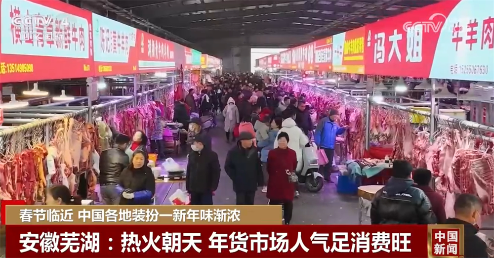 央视网消息:蛇年春节的脚步越来越近,中国多地装扮一新,节日氛围浓厚;年货市场人气足、消费旺,浓浓的年味儿扑面而来。