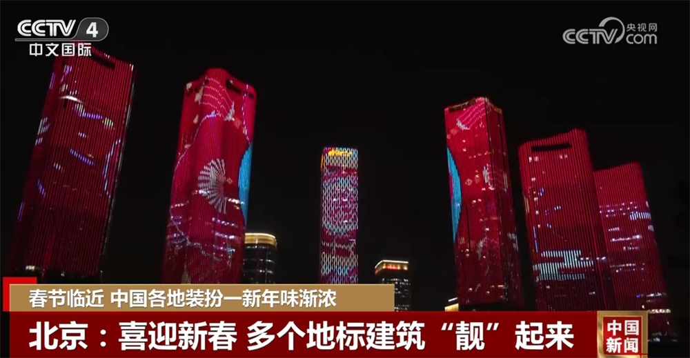 喜迎新春、年味渐浓,北京多个地标建筑已经通过灯光秀等方式“靓”了起来。在奥林匹克公园、中央商务区楼宇群,非遗、传统春节元素融合在璀璨的灯光里,展现着首都的繁华与活力。