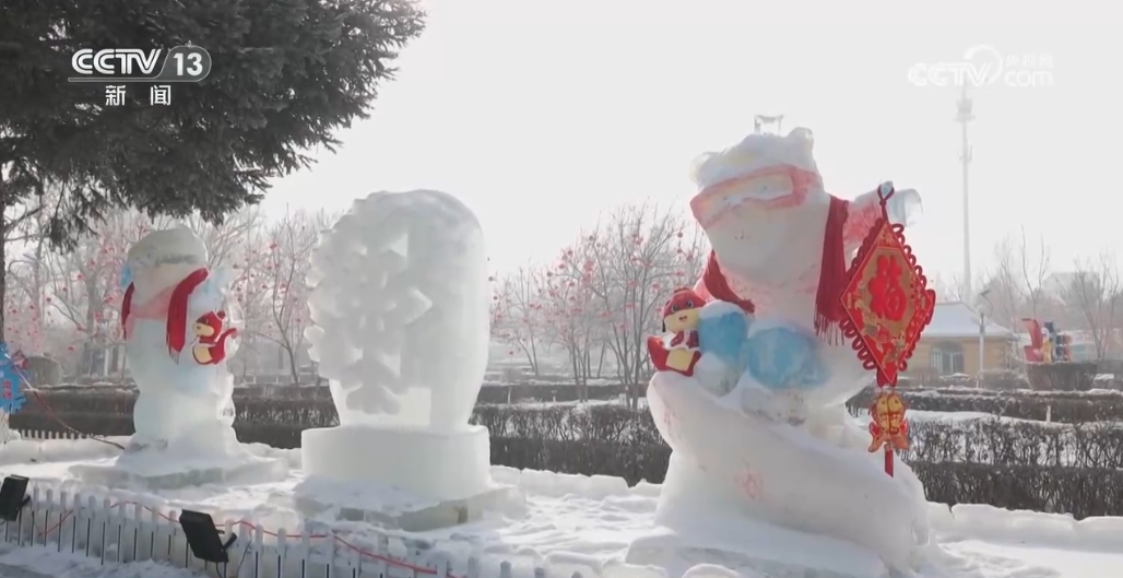 除此之外,在蛇年东北地区冰雪资源价值不仅仅在旅游经济,黑龙江省内多个城市,利用得天独厚的冰雪优势,将冰雕雪雕作品布置在街道旁、社区周边,营造出了过年的节日氛围。齐齐哈尔市梅里斯达斡尔族区,组织了专业团队和社区居民一起动手,打造了一系列精美的雪人雕塑、雪屋装饰。