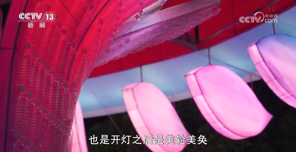 广州市越秀公园园容绿化部部长 李庆天:我们把掉落的树枝经过打磨,做成灯座,其中采用了不同的造型。从树上来,又回到树上去,体现一种生命的循环和一种低碳的理念,做成了这组生态之光的灯组。此外在我们另外一个区域,还有另外一个叫彩屏幻梦的一个灯组,是用我们废弃的塑料瓶所做成的,开灯之后美轮美奂,受到很多小朋友的喜欢。
