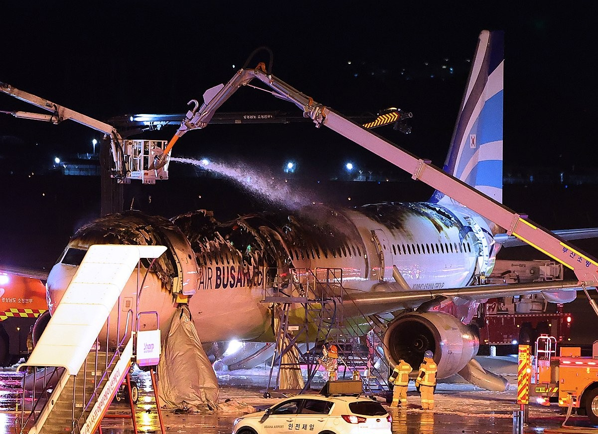 韩国釜山航空一客机起火 起火源或为机舱内乘客手提行李