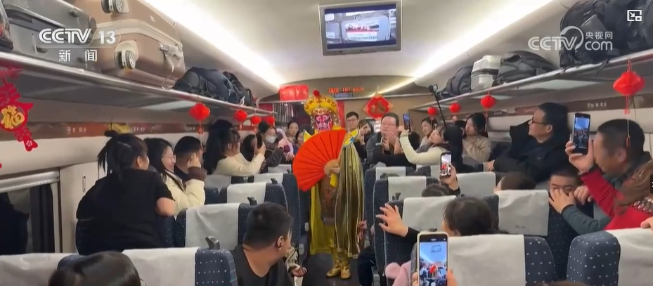 在川青铁路城6686次旅游专列上,精彩绝伦的川剧变脸和神奇莫测的魔术表演火热上演,吸引更多游客坐着高铁去九寨。从腊月二十三到大年初二,九寨沟景区的客流量超过十万人次,相比于去年同期增长了近四成。