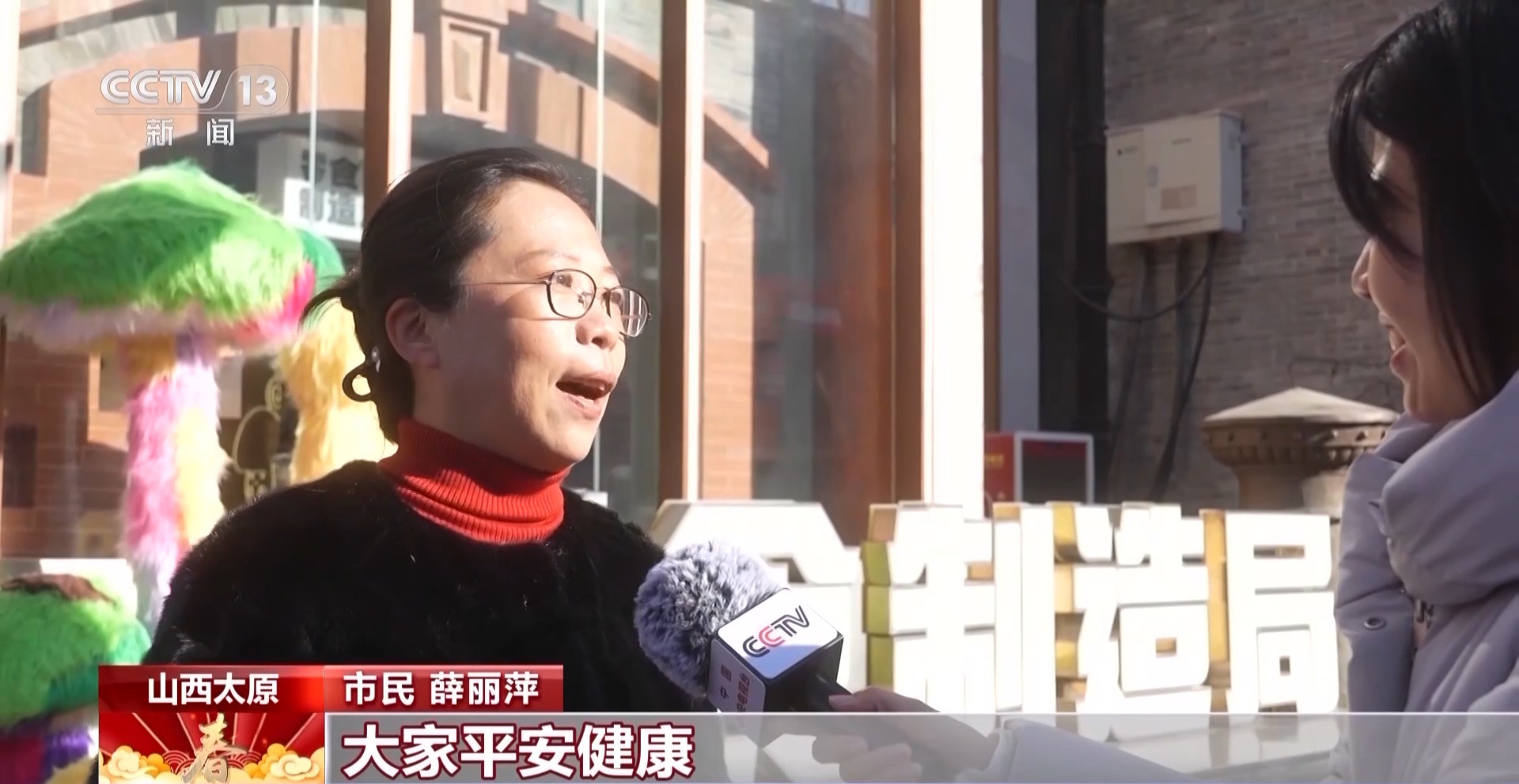 市民:第一个非遗春节感觉年味更重了,像我们在街上看灯,那些比较显眼的地方都有春节的标志,感觉很有气氛。