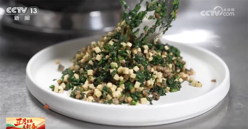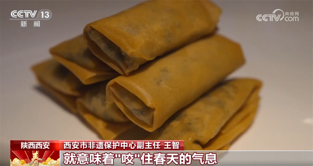 西安市非遗保护中心副主任王智称:“荠菜是一种野菜,这个时候最嫩,吃这样的荠菜春卷就意味着‘咬’住春天的气息,期盼来年五谷丰登。”