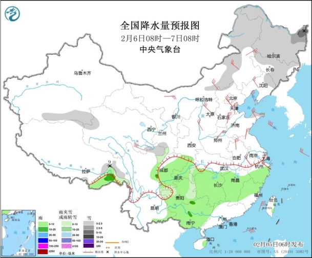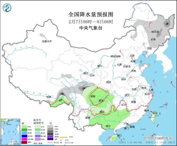 另外,未来三天,西南地区、江汉、江南将有一次小雨过程,贵州、湖北西南部、湖南北部、浙江北部的部分地区有雨夹雪;内蒙古东部、黑龙江和吉林等地有小到中雪。