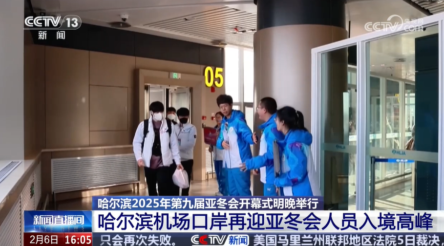 央视网消息:亚冬会开幕在即,这两天,哈尔滨太平国际机场再次迎来亚冬会人员入境高峰。2月5日,共有780名涉亚冬会人员抵达哈尔滨,其中有来自11个国家和地区的共计148名涉亚冬会人员从哈尔滨机场口岸入境,为抵离服务开启以来单日入境高峰。