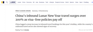 香港《南华早报》网站报道称,中国免签政策成效显著。根据官方数据和旅游业内人士反馈,中国今年春节期间的入境旅游预订量较去年增长逾200%。这一增长主要受到免签政策范围扩大的推动。文化和旅游部表示,许多外国游客选择在节日期间赴华旅游,欣赏舞狮表演,身着传统的汉服,体验中国独特的文化魅力。