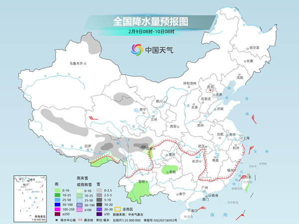 今明天,西藏、四川等地仍有雨雪天气,中东部大部地区降水难觅。后天,我国降水范围进一步扩大,东北等地部分地区有降雪,黄淮、江淮、江南、华南等地也将有弱降水出没。
