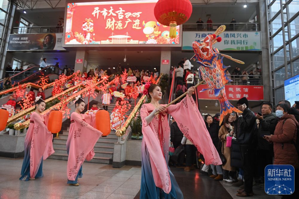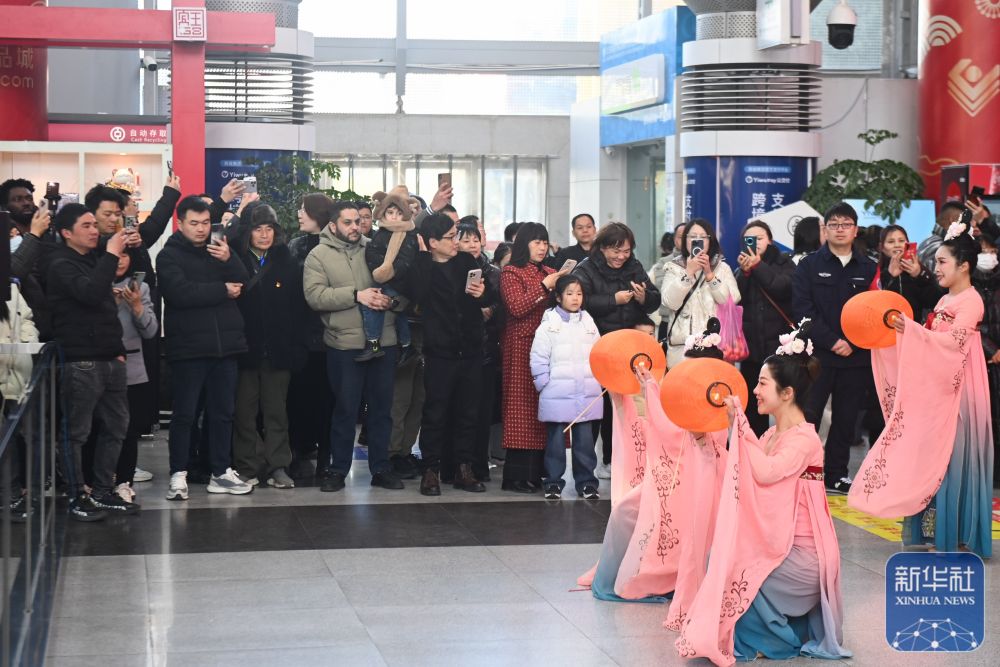 2月9日,演员在义乌国际商贸城的大厅进行文艺表演。