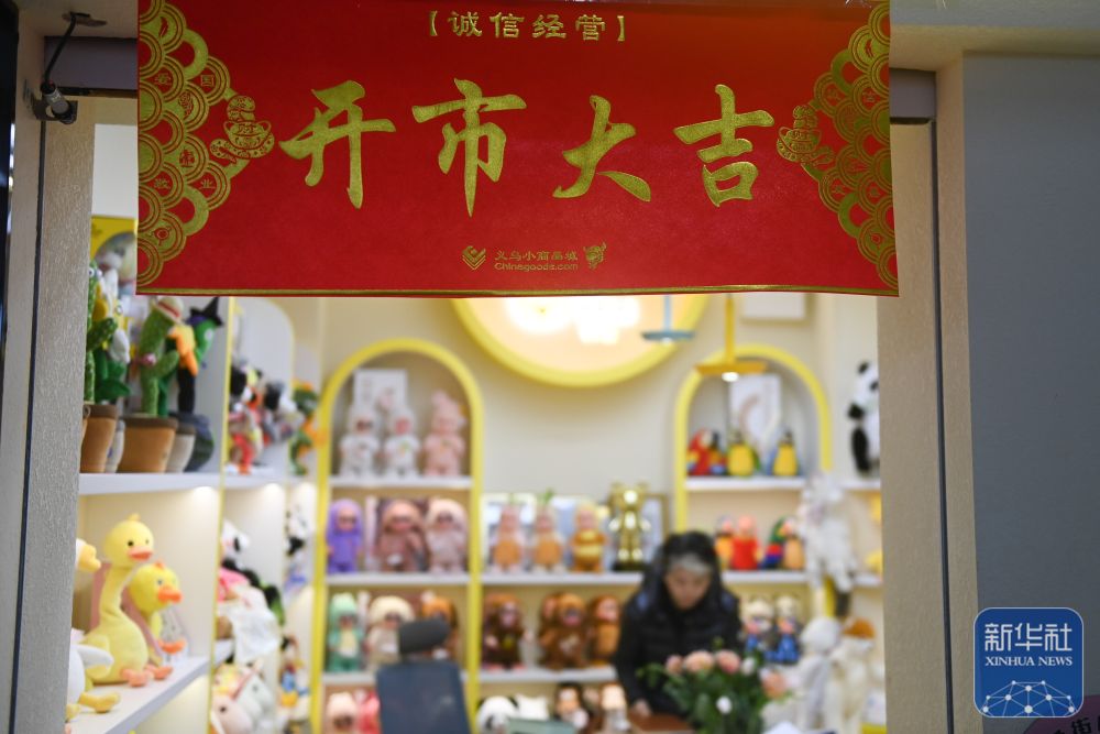 2月9日,义乌国际商贸城的一家店铺在新春开市后营业。