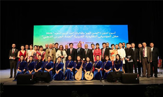 演出在欢快喜庆的器乐合奏《幸福年里新春乐》中拉开帷幕,《小放牛》《百鸟朝凤》《夜深沉》《十面埋伏》《二泉映月》《西凉沙影》《查尔达斯》《梁山伯与祝英台》《我爱你,中国》《今夜无人入睡》等中外经典曲目轮番上演,充分展现了中国传统民乐的独特魅力和创新发展,并对埃及经典乐曲《我的美丽祖国》作了中国风格的深情演绎,引发现场观众强烈共鸣和热情回应。演出尾声阶段,2位埃及乌德琴演奏家与中国艺术家同台合奏民乐经典《花好月圆》和《金蛇狂舞》,两国艺术家默契配合,用音乐架起友谊桥梁,共同表达对新年的美好祝福,将现场喜庆气氛推向高潮。