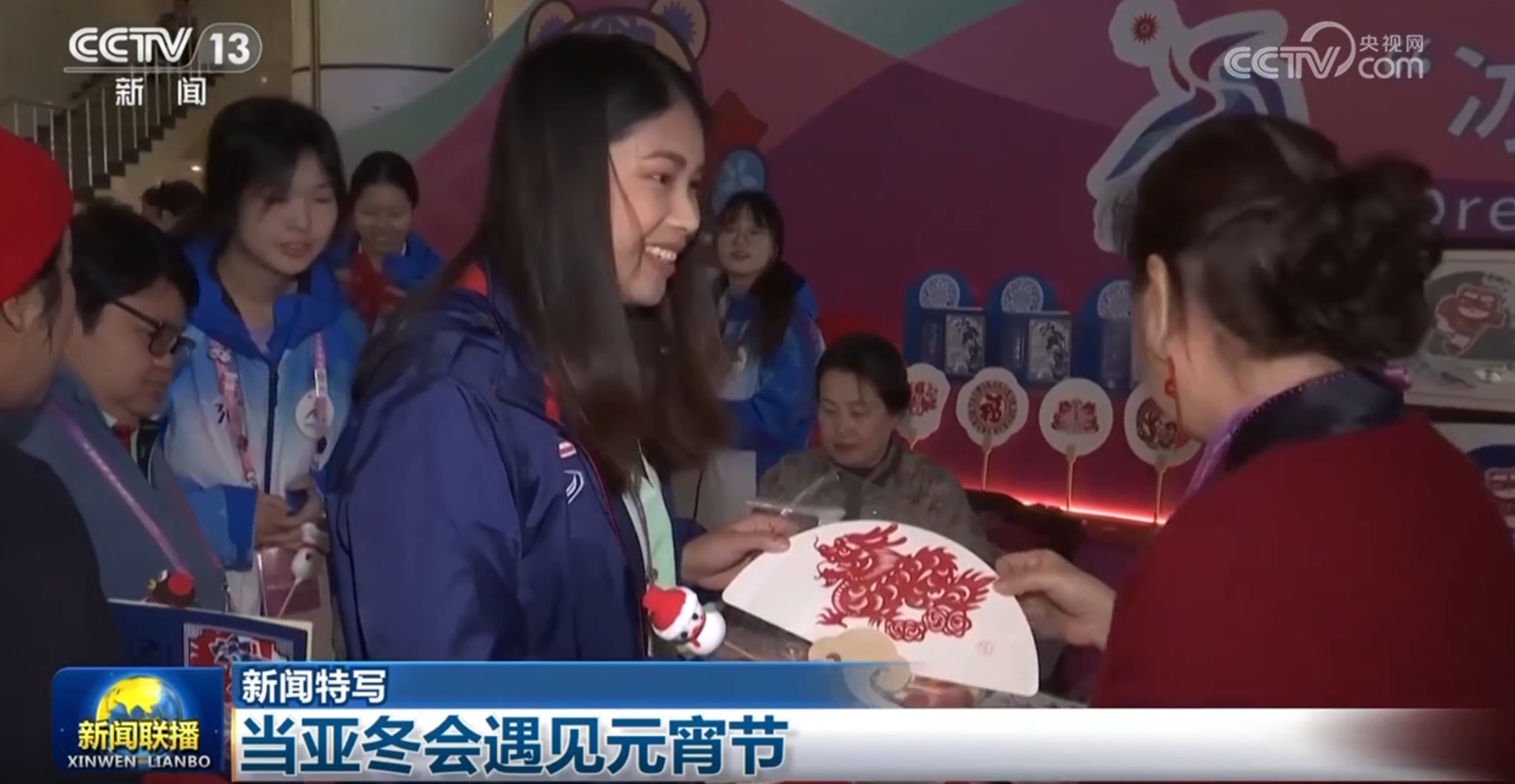 在哈尔滨运动员村,方正剪纸、龙江皮影戏等独具黑龙江特色的传统文化展示吸引了各国运动员围观,工作人员送上的红灯笼更是让大家感受到了浓浓的中国传统节日喜庆氛围。