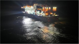 1时05分,“创力”轮甲板值班人员在安全巡视时听到海面传来呼救声,随后发现一艘木质渔船遇险,3人落水急需救援。“创力”轮立即启动应急预案,指挥驾驶台启用探照灯、强光手电及无人机锁定落水人员位置,船舶动力系统紧急备车并调整救援姿态,救助艇进入待命状态,为救援争取宝贵时间。1时08分,无人机传回实时画面:3名落水者正拼命挣扎,生死悬于一线。情况危急,刻不容缓,“创力”轮立刻下放救助艇,展开救援。1时20分,救援小组成功将3名落水渔民转移至救助艇,随后将其安全带回“创力”轮。