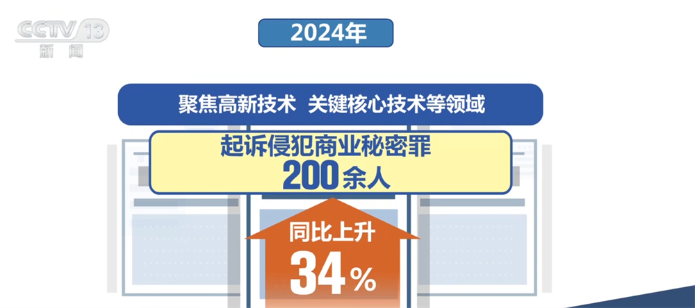 2024年,全国检察机关起诉扰乱市场秩序犯罪4万余人,同比上升21%。聚焦高新技术、关键核心技术等领域,起诉侵犯商业秘密罪200余人,同比上升34%。强化涉企案件检察监督,办理涉企民事检察监督案件2万余件,办理涉企行政检察监督案件2.5万余件,办理涉企公益诉讼案件1.2万余件。