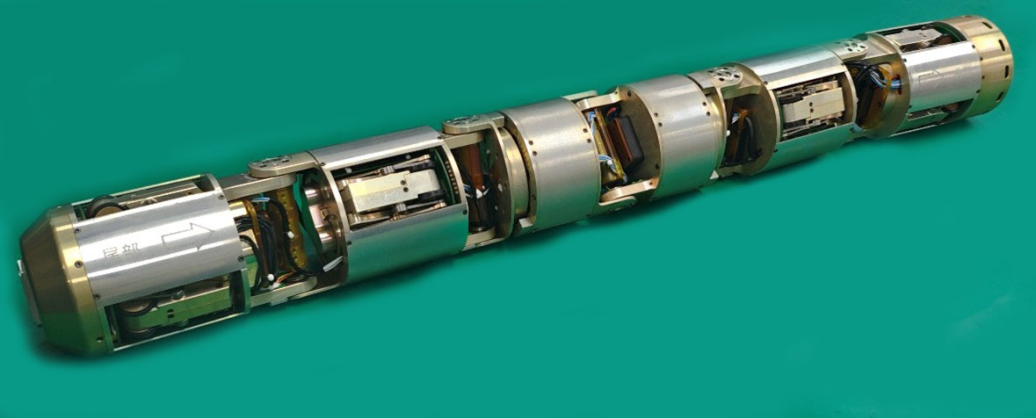机器人采用两头两尾前后对称的模块化结构,具有23个自由度,配备位置、力等多种类型传感器。机器人的“智慧大脑”利用全身传感器信息计算管道机器人的姿态、位置,并给出运动策略,在保障管道安全的前提下,调整全身各关节位置、速度、力的输出,使机器人平稳地在空间站管道内运动。