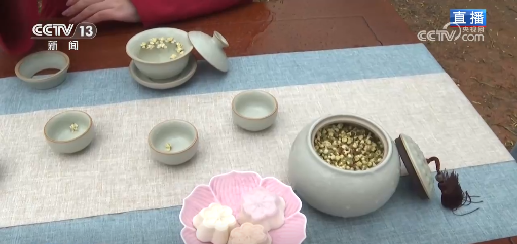 在这里,人们赏梅还不够,还要将梅花的味道留在唇齿间。于是,这里就衍生出了很多梅花元素的美食。比如梅花茶,梅花糕,真是香气扑鼻。当地还开发了许多梅花有关的文创产品,例如梅花杯、梅花书签、梅花头饰等,大家可以把这份“梅”好带回家。