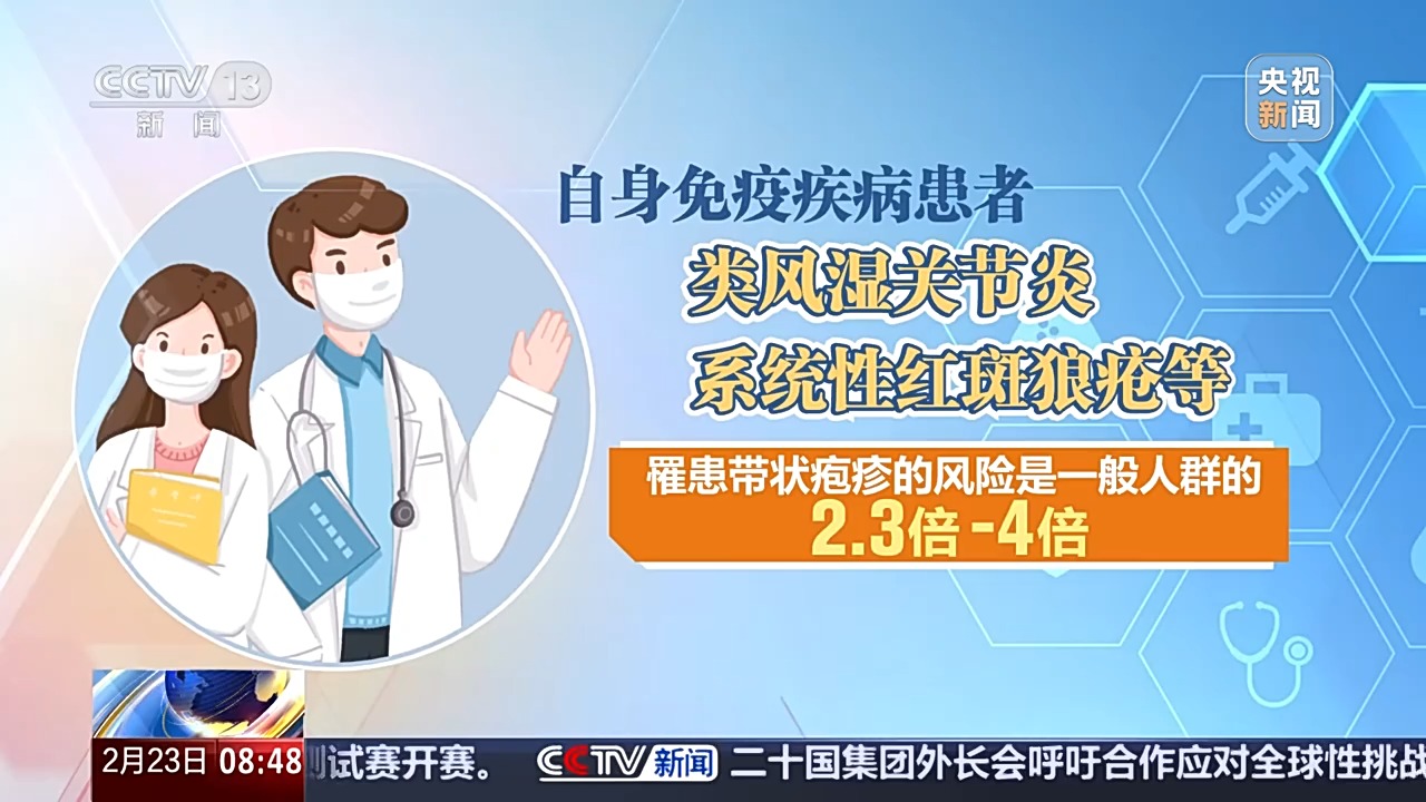 除了50岁以上的中老年人患病率升高以外,糖尿病、慢性肾脏疾病、慢性阻塞性肺疾病等慢性病患者,罹患带状疱疹风险增加24%到41%;自身免疫疾病患者,比如类风湿关节炎、系统性红斑狼疮等,罹患带状疱疹的风险是一般人群的2.3倍到4倍。