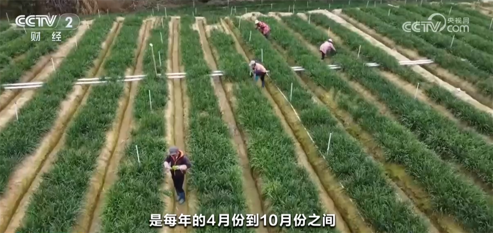 广西贺州市昭平县北陀镇风清村某韭菜薹种植基地负责人雷伯尧称:“我们种植这个韭菜薹,从生长期到结束生长期一般都是3年,每年的丰产期是4月份到10月份之间。”