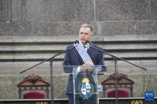 3月1日,乌拉圭当选总统奥尔西在位于蒙得维的亚的国会宣誓就职并发表演讲。新华社记者 张铎 摄