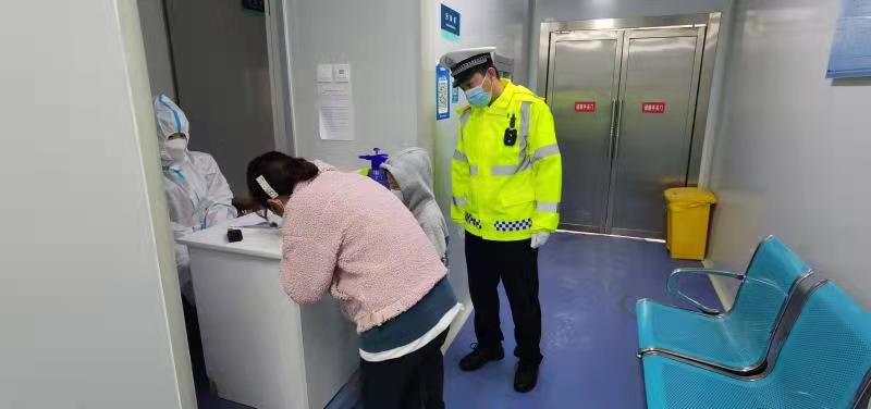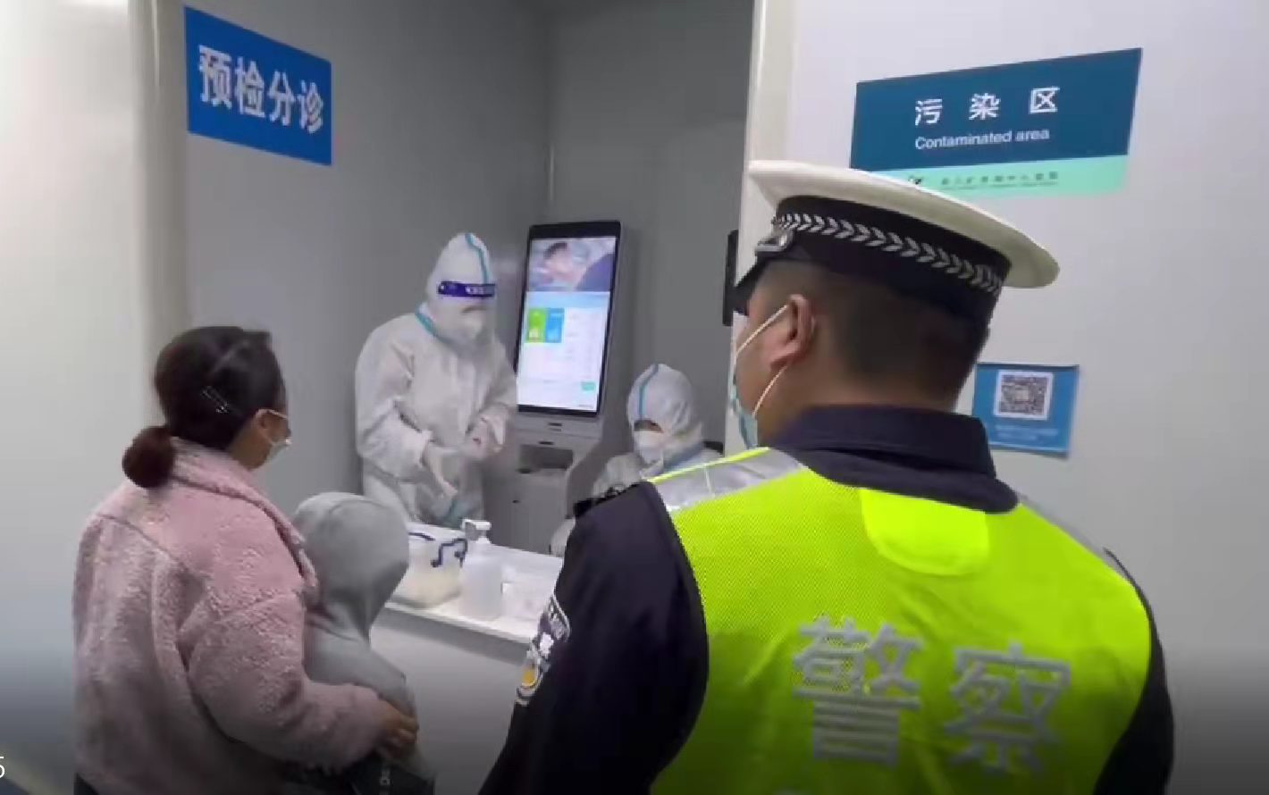 3月16日14时17分,铜川市公安局交警支队第一大队黄堡中队接到大队指令:“在王益区黄堡新城,一名七岁男孩发烧38度多,由于疫情防控期间施行道路交通管制,他们没有通行证,无法驾车赶往医院给孩子看病,情况特殊,请求执勤交警帮助”接到电话后,值班民警贾孙兆川和辅警吴昊立刻驾驶警车赶到求助人的居住地点黄堡新城。见到孩子一家人后,民警分别查验了他们的健康码、行程码和48小时核酸检测报告,并了解得知孩子由于清晨做核酸检测期间衣着单薄,导致身体受凉随后出现发热症状。