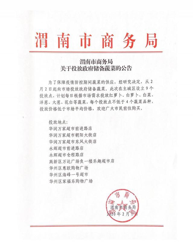 渭南市商务局 关于投放政府储备蔬菜的公告