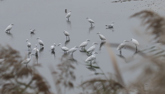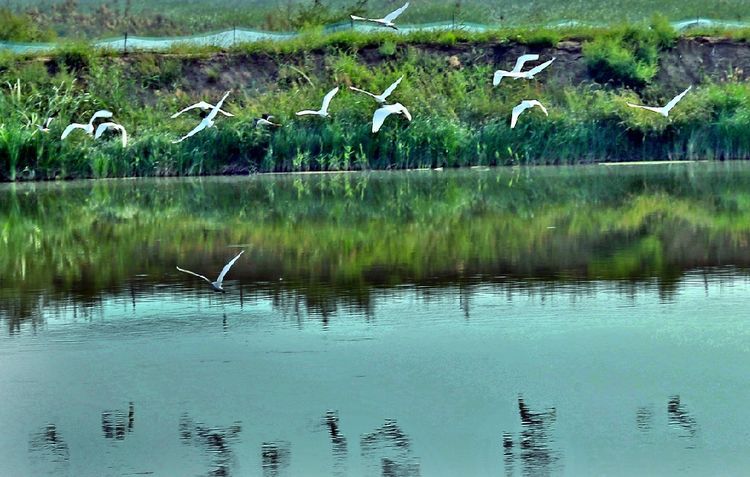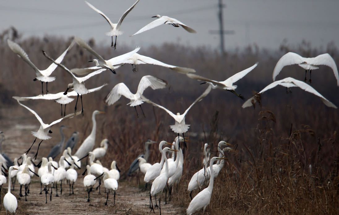 10月2日,记者在陕西省大荔县黄河湿地自然保护区看到,成千上万的鸟儿栖息在芦苇荡、飞翔在湿地上空,构成了一幅和谐优美的湿地生态景观图。