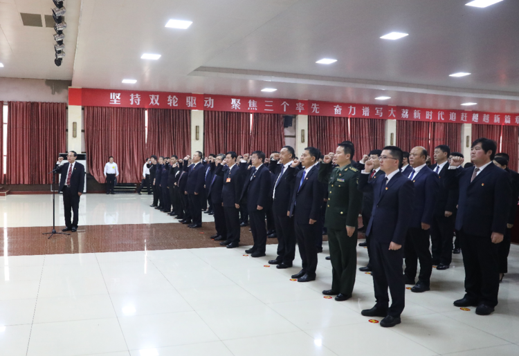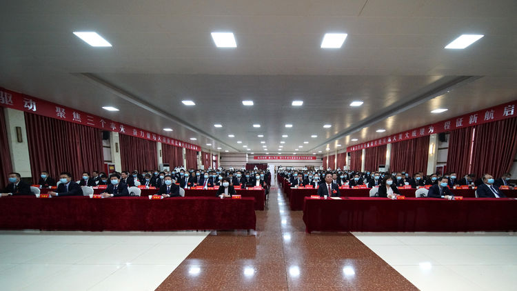 由建新、马荣界、杜鑫、张锋、沙伟伟、张红林、谢文秀、卢高昌、李刚、许喜林、潘宏伟、高峰在主席台前排就坐。渭南市委驻会指导组到会指导。
