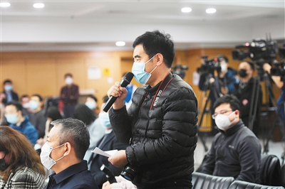 记者在新闻发布会现场提问。(记者 李欣 摄)