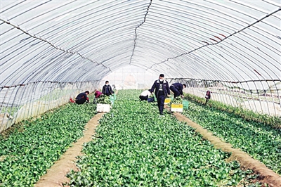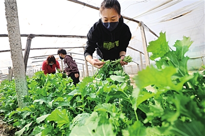 3月6日,沣西新城一蔬菜大棚里菜农采摘蔬菜
