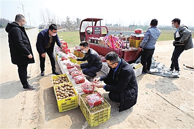 3月6日,鄠邑区一路边摊点猕猴桃、草莓热卖