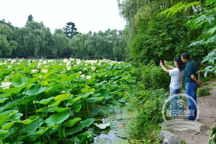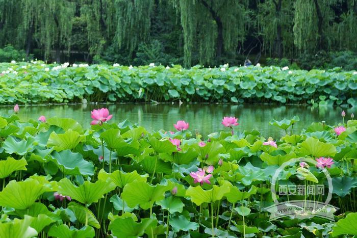 6月27日,兴庆公园荷花雨后竞相开放,粉红的花瓣在绿叶的环抱中更显娇嫩,白色荷花延绵不绝,婀娜多姿,美不胜收。(西安报业全媒体记者 郝钟毓 摄)